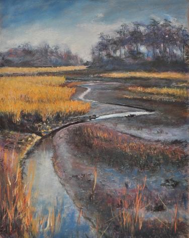| "Low Tide on Pine Creek" 24 x 18 pastel $1200 Third Place Award Garden of Dreams Exhibition 2013 |